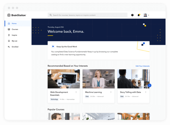BrainStation Online is a state-of-the-art, on-demand learning platform, designed by industry experts to equip organizations with the skills they need for the future of work.
